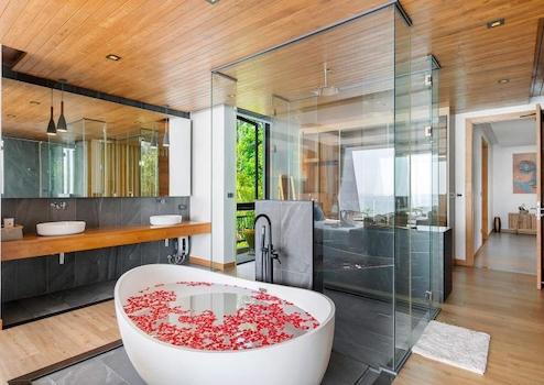 Salzwasserpool mit Jacuzzi, Garten, Kino/Fitnessraum, Carport, einzigartige Lage an der nordöstlichen Spitze der Insel