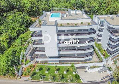 Wir vermitteln den Verkauf einer schönen modernen Wohnung P7 mit einer Fläche von 110,54 m2 oberhalb des Zentrums von Opatija mit Panoramablick auf das Meer, einem Balkon, einem Swimmingpool, einem Aufzug und zwei Parkplätzen. Dieses moderne und exklusive Anwesen zeichnet sich durch seine südliche Ausrichtung mit schöner Aussicht, Glasschiebewänden, die eine freie Sicht ermöglichen, und viel Licht das ganze Jahr über aus. Die Wohnung besteht aus zwei Schlafzimmern, zwei Badezimmern und einer Toilette, und das schöne offene Wohnzimmer ist mit dem Esszimmer und der Küche verbunden, und der gesamte Raum bietet Zugang zur Terrasse, wo Sie die schöne Aussicht auf das Blau genießen können Meer. Wir heben hervor: - fantastische SCHUCO-Aluminiumschreinerei - erstklassiges Parkett - elektrische Jalousien - erstklassige Sanitärkeramik - italienische Keramik - Sicherheitseingangstür - Aufzug - Gemeinschaftspool - energieeffiziente Bauweise und Isolierung Die Wohnung hat Zugang zum Gemeinschaftspool und auch verfügt über einen Aufzug und zwei Parkplätze, von denen sich einer in der Garage befindet und der andere nicht überdacht ist. Die Lage der Wohnung ist fantastisch: eine ruhige und friedliche Straße oberhalb des Zentrums von Opatija, nahe dem Strand und der Promenade Lungomare. Den Strand erreichen Sie zu Fuß in nur 8 Minuten, mit dem Auto dauert es tatsächlich nur eine Minute. Es ist wichtig darauf hinzuweisen, dass das Gebäude von grünem Wald umgeben ist. Es ist eine perfekte Gelegenheit, eine fantastische Immobilie in einer der schönsten Städte an der Adria zu kaufen. Ideal zum Wohnen, aber auch zur touristischen Vermietung oder Investition.