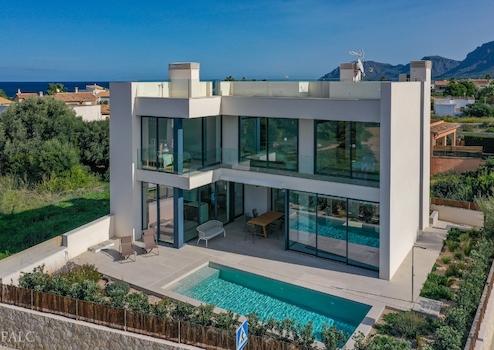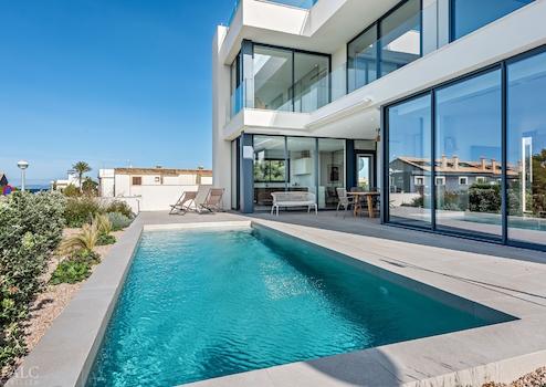 Diese moderne Villa befindet sich in traumhafter Lage direkt am Naturstrand in Colònia de Sant Pere. Die neuwertige Immobilie erstreckt sich über zwei Etagen und bietet insgesamt 240 m² Wohnfläche. Das Grundstück umfasst 365 m².