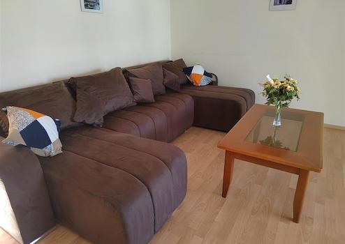 Im Apartmenthaus gibt es 8 Gästewohnungen – 7 große Zweizimmerwohnungen des gleichen Typs (für 2-4 Personen: Schlafzimmer + Wohnzimmer mit Küche und Balkon/Terrasse) und 1 Studio (für 2 Personen). Alle Wohnungen sind mit Möbeln, Küchenutensilien, Klimaanlage, mechanischen Rollläden, Balkonmöbeln usw. ausgestattet.