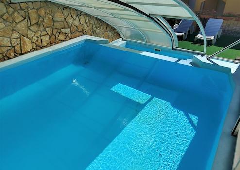 Im Hof gibt es einen Außenpool mit Sonnenliegen. Poolabmessungen: 6,3 Meter * 4,6 Meter (Tiefe 60 cm und 135 cm).