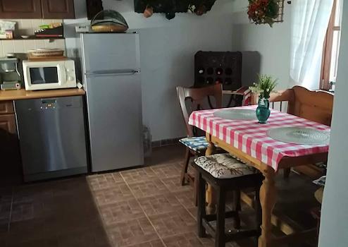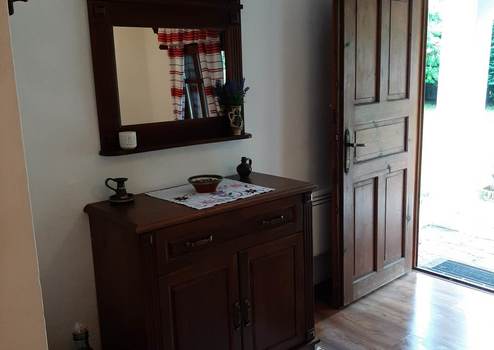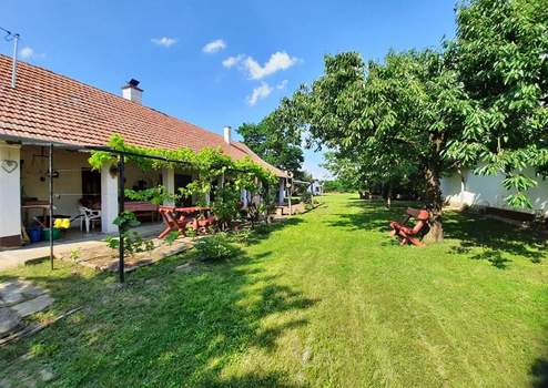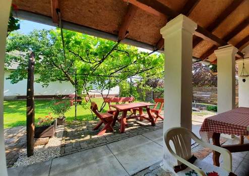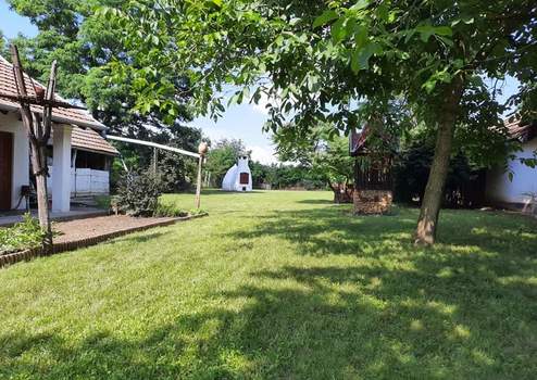 Die Küche sorgt mit geschmackvollen Einbauküchenmöbeln, einem Gasherd, einem Geschirrspüler und Kühlschrank der Premiumklasse sowie Holzmöbeln für den Komfort der Bewohner. Der kleinere Raum, der sich am anderen Ende des Gebäudes, von der Veranda mit Veranda, öffnet, ist mit drei Betten, zusätzlichen Möbeln sowie einer Dusche und Toilette ausgestattet und verleiht dem Haus doppelten Komfort. Die Räume sind mit hochwertigem Stabparkett ausgestattet, Flur, Küche und Wasserblöcke sind mit Steinplatten belegt. Das Haus ist mit wärmeisolierten Holztüren und Fenstern mit Moskitonetzen ausgestattet, die mit einzigartigen, geschnitzten Zierlamellen ausgestattet sind. Die Leistung des Stromnetzes wurde im vergangenen Jahr erweitert. Der Dachboden ist sauber, ordentlich und voll nutzbar, der erste Teil kann sogar eingebaut werden und eignet sich daher bei Bedarf auch zur Schaffung eines zusätzlichen Wohnraums. An das Gebäude angeschlossen sind überdachte Lagerräume, die z.B. Gartengeräte, Maschinen, Fahrräder usw.