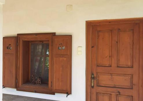 A szobák minőségi szalagparkettát, az előszoba, konyha, illetve vizes blokkok járólap burkolatot kaptak. A ház mindenhol hőszigetelt fa, szúnyoghálós nyílászárókkal felszereltek, melyek, egyedi, faragott díszítésű spalettákkal lettek ellátva.