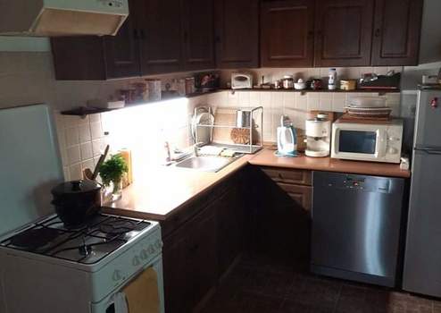 A konyha ízléses beépített konyhabútorral, gáztűzhellyel, továbbá prémium kategóriás mosogatógéppel és hűtőszekrénnyel, fa bútorokkal szolgálja a lakók kényelmét.