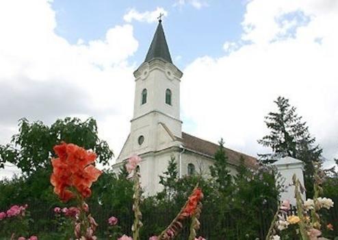 Es war bereits im Jahr 1330. Die Jahrhunderte forderten ihren Tribut an dem Gebäude, und so begann man 1776 mit der Hilfe von Sámuel Haller mit dem Wiederaufbau. Die wiederaufgebaute Kirche, ein schlichter Barockbau, wurde 1785 geweiht. Die letzte Sanierung durch die Gemeinde erfolgte im Jahr 2014. Im Kirchengarten befindet sich Ungarns größte Kirschensammlung mit mehr als 100 Sorten, die auch als Genbank dient.