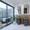 Zwei davon mit Balkon und Badewanne (von vier Seiten blickdicht)
