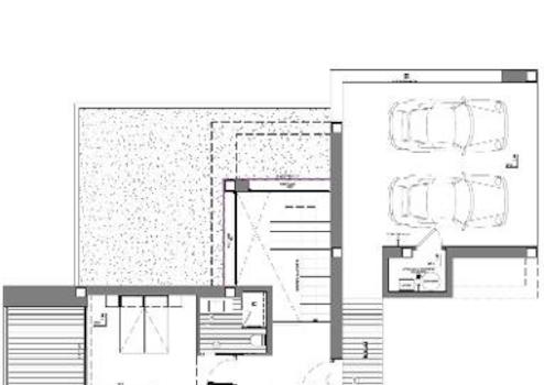 Im Obergeschoss befindet sich ein Privatparkplatz für bis zu zwei Fahrzeuge. Der Zugang zum Haus erfolgt ebenfalls über diese Etage.