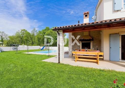 Wir präsentieren stolz diese hochwertige Steinvilla, die nur wenige Autominuten vom Zentrum von Marčane und den wunderschönen Naturstränden entfernt liegt. Es handelt sich um eine 2015 im traditionellen istrischen Stil erbaute Villa, die sich in einer kleinen Luxussiedlung inmitten von Natur und Grün befindet. In der Nähe der Villa befindet sich einer der schönsten Naturstrände mit kristallklarem Meer, ideal für Spaß, Geselligkeit und Erholung nach einem aktiven Tag, sowie alle Annehmlichkeiten, die Sie für einen sicheren und ruhigen Aufenthalt benötigen. OBJEKTBESCHREIBUNG: Diese hochwertige und gepflegte Villa verfügt über insgesamt 160 m2 Wohnfläche, die auf zwei Etagen, Erdgeschoss und Obergeschoss, aufgeteilt ist. Das Erdgeschoss der Villa besteht somit aus einer Eingangshalle mit Garderobenbereich, die uns dann in den Wohnbereich der Villa führt, der nach dem „Open Space“-System ohne Trennwände konzipiert ist. Es gibt ein sonnendurchflutetes, gemütliches Wohnzimmer, dann ein Esszimmer, das Platz für die ganze Familie bietet, und eine voll ausgestattete Küche. Das Wohnzimmer ist mit einem funktionalen Kamin ausgestattet, der sich ideal für die kälteren Monate des Jahres eignet. Vom Erdgeschoss der Villa aus haben Sie ungehinderten Zugang zum Garten und zur größeren überdachten Außenterrasse, ideal für geselliges Beisammensein und Spaß mit Freunden und Familie. Darüber hinaus gibt es im privaten Teil des Erdgeschosses der Villa ein erstes Schlafzimmer mit eigenem Bad, sowie ein Gäste-WC und einen Abstellraum. Über eine Innentreppe gelangt man in die obere Etage der Villa, die aus zwei geräumigen Schlafzimmern mit jeweils eigenem begehbaren Kleiderschrank und Bad besteht. Jedes Zimmer hat außerdem Zugang zu einer größeren überdachten Terrasse mit Blick auf die Bucht von Raš und das Grüne. BESCHREIBUNG DES GARTENS: Die Villa liegt in einem weitläufigen, vollständig eingezäunten Garten von 770 m2. Wenn wir die von der Villa und dem Pool eingenommene Fläche abziehen, erhalten Sie einen komfortablen, angelegten und gepflegten Garten von 311 m2, ideal für Spaß und unbeschwertes Spielen Ihrer jüngsten Familienmitglieder. Durch ein elektrisches Tor gelangt man in den umzäunten Hof, wo sich ein Parkplatz für 2 Autos befindet, der je nach Wunsch oder Bedarf der zukünftigen Eigentümer auch überdacht werden kann. Im zentralen Teil des Gartens befindet sich ein großzügiger 37 m² großer Swimmingpool mit einer zum Entspannen idealen Liegewiese, daneben befindet sich die bereits erwähnte überdachte Sommerterrasse mit Esstisch und Außengrill. Für die Begrünung des Gartens sorgt ein automatisches Bewässerungssystem. ZUSÄTZLICHE INFORMATIONEN: * Die Villa wird komplett möbliert verkauft. * Der Besitz der Villa ist geordnet, ohne finanzielle Belastung und es liegen alle notwendigen Unterlagen vor. * Es ist mit Klimaanlagen in jedem Raum ausgestattet, in allen Räumen ist eine Gaszentralheizung installiert, sowie in den Badezimmern Fußbodenheizung. * Auf dem Dach sind Sonnenkollektoren installiert, die zur Warmwasserbereitung dienen. * Im Wohnzimmer gibt es einen Holzkamin, der neben der besonderen Atmosphäre, die er in den kälteren Monaten des Jahres schafft, auch als zusätzliche Raumwärmequelle genutzt wird. * Die Villa ist mit einem Sicherheitssystem aus Alarmen, Sensoren und Kameras ausgestattet. Es ist eine ideale Gelegenheit für alle, die ein Stück Paradies für sich und ihre Familie oder als Option für den Tourismus suchen, wenn man bedenkt, dass die Immobilie bereits mit 4 Sternen kategorisiert ist.