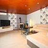 Im Erdgeschoss befindet sich eine separate Ein-Zimmer-Wohnung, ideal für Gäste, während das Obergeschoss eine geräumige Ein-Zimmer-Wohnung beherbergt, bestehend aus Küche, Bad, geräumigem Wohnzimmer, Schlafzimmer und Waschküche. Beide Wohneinheiten haben eigene Eingänge und Terrassen und können völlig unabhängig funktionieren. Die größere Wohnung hat Zugang zu einer Sonnenterrasse mit Pool.