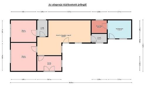 A 100 nm-es ingatlanban jelenleg 4 szoba található, melyek külön nyílók, de igény esetén 2 szoba egymásból nyílóvá tehető.