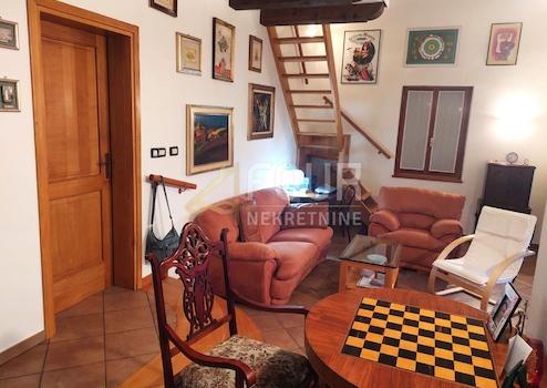 Es erstreckt sich über zwei Etagen. Das Erdgeschoss besteht aus zwei Schlafzimmern, einem Badezimmer, einem Wohnzimmer mit Küche und Esszimmer sowie einem Ausgang zu einer schönen Terrasse. Im hohen Dachgeschoss befindet sich ein Zimmer mit Badezimmer.