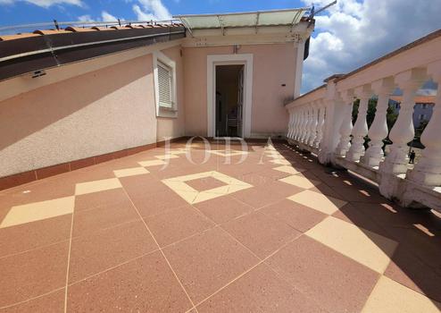 Die Wohnung von 63,69 m2 befindet sich im Dachgeschoss und besteht aus einem Eingangsbereich, einem Abstellraum, einer Küche mit Esszimmer und Wohnzimmer, einem Badezimmer, zwei Schlafzimmern, einer zusätzlichen Küche mit Wohnzimmer, einem Flur und einer Terrasse mit offenem Meerblick. Die Wohnung kann als zwei