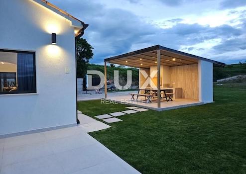 Buzet, eine kleine Stadt auf einem samtigen Hügel, umgeben von mächtigen Steinmauern und gewürzt mit göttlicher autochthoner istrischer Gastronomie. Sie ist weithin als Stadt der Trüffel bekannt, deren Jagdreviere direkt in den Wäldern des Tals des Flusses Mirna liegen. Eines der wertvollsten Merkmale dieser Region ist sicherlich ihre unberührte Natur. Wunderschöne Naturlandschaften, die Küsten- und Berglandschaft mit zahlreichen Hügeln und dem Tal des Flusses Mirna verschmelzen, bieten einzigartige Ausblicke. Das Gebiet von Buzeština liegt im nördlichsten Teil Istriens im Landesinneren, im Gebiet zwischen drei großen Stadtzentren: Rijeka, Triest und Pula. Das Gebiet ist sehr vielfältig, von 10 m bis über 1000 m Seehöhe. Buzet umfasst zusammen mit der Umgebung, bekannt als Buzeština, eine Fläche von 165 km2. In der Nähe von Buzet steht auf einer Lichtung mit schöner Aussicht eine Villa mit großem Garten zum Verkauf. Die Villa besteht aus Erdgeschoss und Obergeschoss. Im Erdgeschoss gibt es sogar zwei Wohnzimmer mit wunderschönem Blick auf die Natur und den Pool, Küche und Esszimmer, Toilette und Fitnessraum. Im Obergeschoss befinden sich 3 große Schlafzimmer mit Badezimmern. Die Villa verfügt außerdem über eine Ladestation für Elektroautos, Fußbodenheizung und -kühlung. Das Wohnzimmer hat einen schönen Ausgang zur Terrasse und zum Hof. Im komplett umzäunten Hof gibt es außerdem einen überdachten Grill mit großem Tisch und Whirlpool. Ideale Immobilie für Touristenvermietung oder luxuriöses Familienleben.