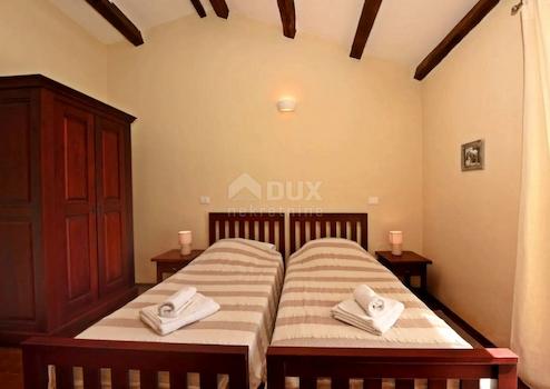 Umgeben von einem angenehmen mediterranen Klima, gelegen im Herzen der Westküste Istriens, der antiken Stadt Poreč und ihrer Küste mit erhaltener natürlicher Schönheit, Landschaftsparks, Pinien- und Eichenhainen die bis zum Meer selbst reichen, entlang dessen sie sich abwechseln mit klarem Meer, Stränden, Buchten und Inseln, die sich über eine Fläche von 139 km² erstrecken und aus 58 Siedlungen bestehen. Mit der Identität einer städtischen Küstenstadt ist Poreč eine Stadt der Kultur, des Sports, der Unterhaltung, des Tourismus und der echten Gastfreundschaft. Eine der attraktivsten Städte des kroatischen Tourismus, die auf einzigartige Weise die natürliche Schönheit Istriens, das reiche kulturelle und historische Erbe und die modernsten Annehmlichkeiten eines Top-Reiseziels vereint. Die Harmonie des alten Stadtkerns, der ein Kulturdenkmal ist, mit einem der berühmtesten istrischen Kulturdenkmäler, der Euphrasius-Basilika, die auf der Liste des UNESCO-Weltkulturerbes steht, und den am besten organisierten und am besten ausgestatteten Touristenorten an der Adria bildet sich ein Mosaik unvergesslicher Erlebnisse. Poreč ist auch eine Stadt, die viel mehr ist als ein Sommerziel voller Sonne und Meer. Poreč ist eine auf den Menschen zugeschnittene Stadt. Eine Stadt, in der es einen ständigen Impuls für bessere Lebensbedingungen und größeren Fortschritt in verschiedenen Bereichen gibt. Eine Stadt, die ein angenehmer, sicherer und gut organisierter Ort zum Leben ist, in der jeder seinen Platz findet, eine Stadt ohne Zuschläge mit hoher sozialer Sensibilität für alle Generationen. Umgeben von viel Grün in einer ruhigen Gegend in der Nähe der Stadt Poreč steht ein rustikales Haus mit Swimmingpool und Panoramablick zum Verkauf. Das Anwesen zeichnet sich durch eine Kombination aus Tradition und Moderne, Bauqualität und räumliche Organisation des Innenraums aus. Das komfortable Haus, ganz mit Stein verkleidet, fügt sich in Form und Farbe in das Dorf und die Landschaft ein und erstreckt sich über zwei Etagen mit funktionalem Grundriss. Im Erdgeschoss gibt es eine Küche, ein Esszimmer und ein Wohnzimmer mit Zugang zu einer überdachten Veranda. Der Grundriss des Erdgeschosses wird durch einen Abstellraum und ein Gäste-WC ergänzt. Die erste Etage besteht aus drei Schlafzimmern, zwei Badezimmern und einem Balkon. Die Heizung/Kühlung des Hauses erfolgt über eine Zentralheizung mit Strom und Klimaanlage. Der umzäunte Garten mit automatischer Bewässerung ist reich an Grün und mediterranen Pflanzen und die perfekte Harmonie wird durch den 32 m² großen Swimmingpool mit Liegewiese abgerundet. Die hervorragende Lage und die räumliche Organisation des Innen- und Außenbereichs dieser Immobilie bieten die Möglichkeit für ein komfortables Familienleben oder eine Investitionsinvestition in ein touristisches Vermietungsunternehmen. Die Immobilie ist komplett ausgestattet und möbliert und wird als solche verkauft. Der Verkäufer der betreffenden Immobilie ist eine juristische Person. Sehr geehrte Kunden, die Agenturprovision wird gemäß den Allgemeinen Geschäftsbedingungen berechnet: www.dux-nekretnine.hr/opci-uvjeti-poslovanja