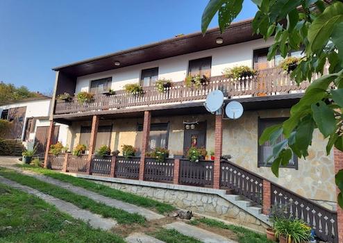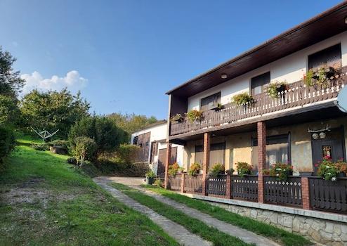Az udvar fásított és füvesített, csodás örökpanorámás telekkel.