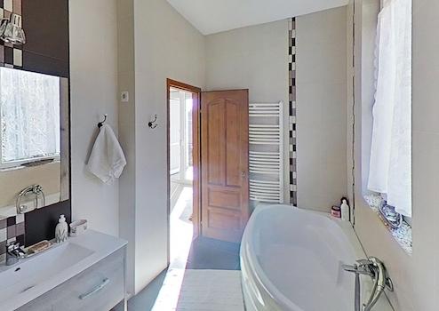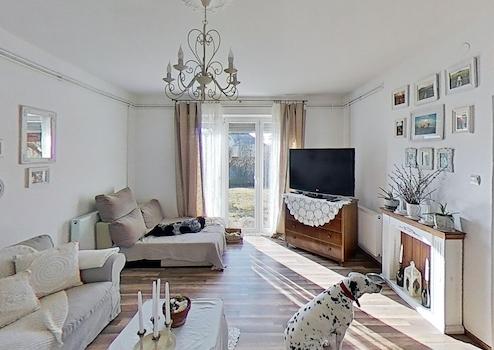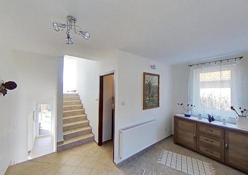 Die derzeitige Wohnfläche des Hauses beträgt 135 m² + 70 m² bebauter Raum, der als Dachboden dient. Strom und Gas befinden sich im Obergeschoss. Auch die 25 qm große Garage kann in die Wohnfläche einbezogen werden, da sie mit einem Fenster und einer Heizung ausgestattet ist.