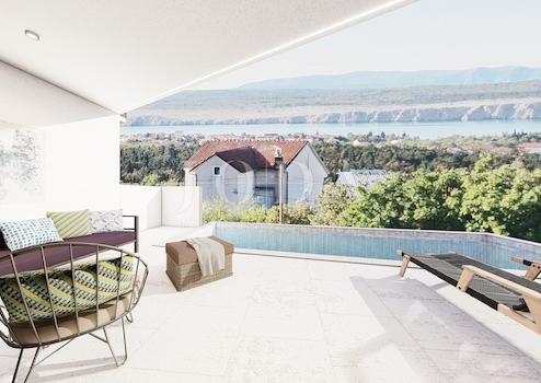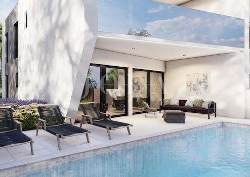 Jadranovo, moderne Doppelhaushälfte mit Pool in Roh Bau