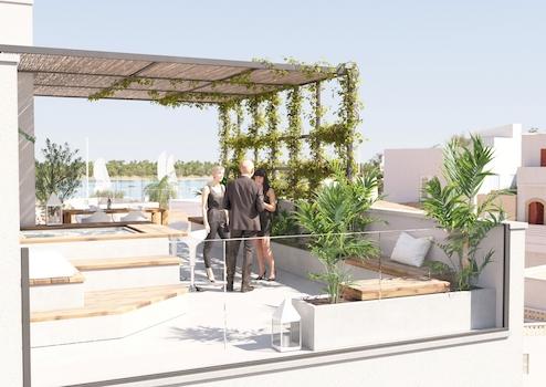 Die Dachterrasse ist ein Highlight dieser Immobilie. Von hier aus haben Sie einen hervorragenden Blick auf den Hafen von Porto Colom. Eine berankte Metallstruktur sorgt für angenehme Beschattung und schafft eine gemütliche Atmosphäre. Optional ist ein kleiner Pool möglich, der für zusätzliche Entspannung und Luxus sorgt.