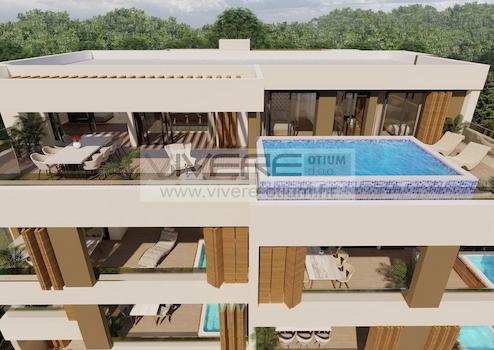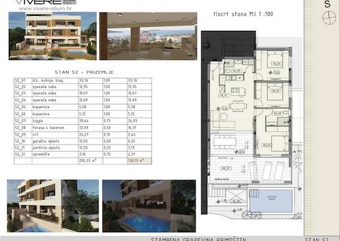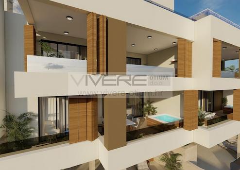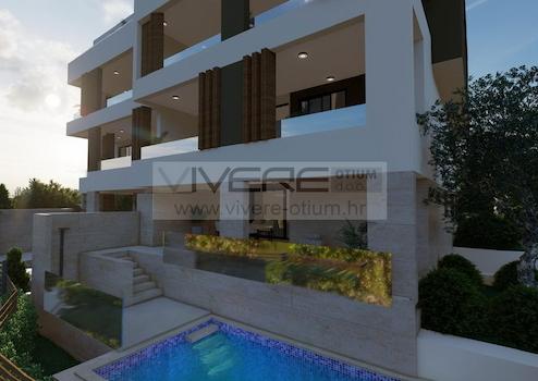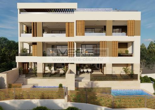 Erleben Sie das Zusammenleben auf eine komplett neue und angenehme Art und Weise. Wir präsentieren Ihnen ein erstklassiges, neues Wohnprojekt; bestehend aus sechs komfortablen Wohnungen und einem unglaublichen Penthouse. Die Wohnungen im Erdgeschoss verfügen über einen Garten und einen privaten Pool, während die Wohnungen im ersten und zweiten Stock mit einem Whirlpool auf den großzügigen Terrassen ausgestattet sind. Das Penthouse verfügt über einen Pool auf der Dachterrasse. Zu jeder Wohnung gehört ein Garagenstellplatz und ein Abstellraum im Untergeschoß sowie ein Stellplatz hinter dem Gebäude. Das Wohngebäude ist außerdem mit einem Aufzug ausgestattet, der alle Etagen verbindet. Es muss hervorgehoben werden, dass jede Einheit voll klimatisiert ist durch eingebaute Deckenklimageräte in den abgehängten Decken, Fußbodenheizung mittels Wärmepumpe, die Fußböden werden mit hochwertigem Parkettböden und exzellenten Keramikfliesen verlegt, die Bäder sind mit sanitären Einrichtungen von höchster Qualität ausgestattet, Videoüberwachung, hochwertige ALU-Zimmerei mit elektrischen Jalousien, einbruchsichere Eingangstüren sowie Grill auf den Terrassen. Einzigartig ist nicht nur die moderne Architektur und die hochwertige Ausstattung, sondern auch die Lage der Immobilie. Dieses besondere Fleckchen Erde liegt direkt an der kroatischen Adriaküste. Auf einer kleinen Anhöhe gelegen besitzen alle Wohnungen einen exklusiven Blick über das kristallklare Meer – romantische Sonnenuntergänge inklusive sowie die pittoreske Altstadt der malerischen Ortschaft Primošten. Alle Annehmlichkeiten des täglichen Bedarfs sind bequem zu Fuß erreichbar. Diese ideale Kombination aus moderner Eleganz und mediterraner Tradition an der perfekten Location werden Sie nicht häufig antreffen! Der Baubeginn ist bereits erfolgt, der geplante Einzugstermin ist für Mai 2025 vorgesehen.