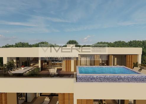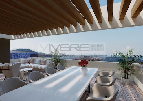 Erleben Sie das Zusammenleben auf eine komplett neue und angenehme Art und Weise. Wir präsentieren Ihnen ein erstklassiges, neues Wohnprojekt; bestehend aus sechs komfortablen Wohnungen und einem unglaublichen Penthouse. Die Wohnungen im Erdgeschoss verfügen über einen Garten und einen privaten Pool, während die Wohnungen im ersten und zweiten Stock mit einem Whirlpool auf den großzügigen Terrassen ausgestattet sind. Das Penthouse verfügt über einen Pool auf der Dachterrasse. Zu jeder Wohnung gehört ein Garagenstellplatz und ein Abstellraum im Untergeschoß sowie ein Stellplatz hinter dem Gebäude. Das Wohngebäude ist außerdem mit einem Aufzug ausgestattet, der alle Etagen verbindet. Es muss hervorgehoben werden, dass jede Einheit voll klimatisiert ist durch eingebaute Deckenklimageräte in den abgehängten Decken, Fußbodenheizung mittels Wärmepumpe, die Fußböden werden mit hochwertigem Parkettböden und exzellenten Keramikfliesen verlegt, die Bäder sind mit sanitären Einrichtungen von höchster Qualität ausgestattet, Videoüberwachung, hochwertige ALU-Zimmerei mit elektrischen Jalousien, einbruchsichere Eingangstüren sowie Grill auf den Terrassen. Einzigartig ist nicht nur die moderne Architektur und die hochwertige Ausstattung, sondern auch die Lage der Immobilie. Dieses besondere Fleckchen Erde liegt direkt an der kroatischen Adriaküste. Auf einer kleinen Anhöhe gelegen besitzen alle Wohnungen einen exklusiven Blick über das kristallklare Meer – romantische Sonnenuntergänge inklusive sowie die pittoreske Altstadt der malerischen Ortschaft Primošten. Alle Annehmlichkeiten des täglichen Bedarfs sind bequem zu Fuß erreichbar. Diese ideale Kombination aus moderner Eleganz und mediterraner Tradition an der perfekten Location werden Sie nicht häufig antreffen! Der Baubeginn ist bereits erfolgt, der geplante Einzugstermin ist für Mai 2025 vorgesehen.
