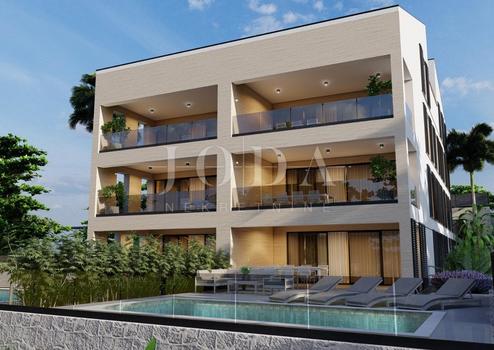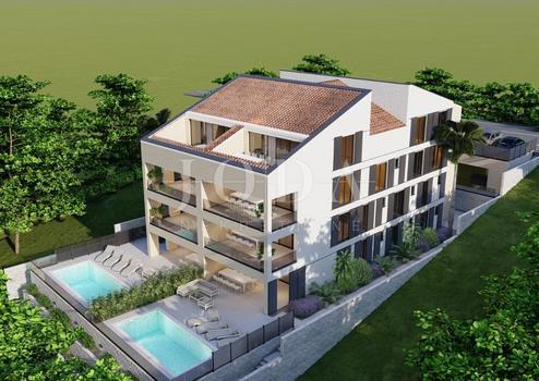 Im Angebot sind noch 4 Wohnungen (insgesamt 8), zum Erdgeschoss gehört der gesamte Garten vorne (der Pool befindet sich im selben), ein Studio-Apartment hinten (35m2), während die restlichen Wohnungen weiter hinten liegen Die 2. Etage und das Dachgeschoss verfügen über große Terrassen mit Panoramablick auf das Meer.