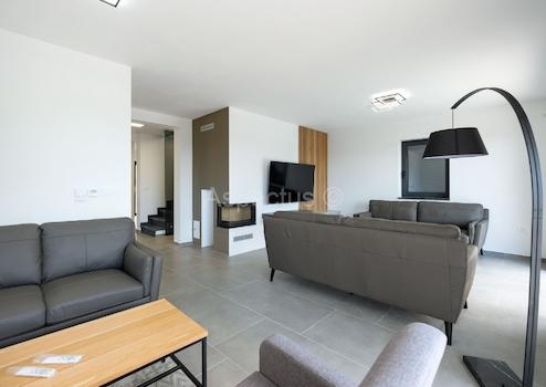 Das Haus befindet sich in der Nähe der charmanten Stadt Svatvinčenat. Das Haus wurde in einem modernen Baustil neu gebaut, mit grossen Glaswänden, durch die viel Licht hereinkommt. Das Haus besteht aus einer Eingangshalle, Küche, Esszimmer, Toilette, Hauswirtschaftsraum, Wohnzimmer mit Kamin und Zugang zur Aussenterrasse, auf der sich ein Aussenpool mit Sonnendeck zum Entspannen und Geniessen befindet. Gleichzeitig verbindet eine Innentreppe den 1. Stock, wo sich 4 geräumige und helle Schlafzimmer mit 4 modernen und voll ausgestatteten Badezimmern befinden.