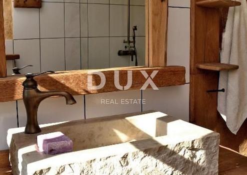 Zum Verkauf steht ein wunderschönes renoviertes autochthones mediterranes Haus mit Swimmingpool in ruhiger und intimer Lage, umgeben von viel Grün. Die Doppelhaushälfte wurde auf einem Grundstück von 250 m2 gebaut, das Haus selbst hat eine Fläche von 100 m2 und umfasst eine Taverne, Erdgeschoss, erste und zweite Etage sowie einen hohen Dachboden. Im Erdgeschoss befinden sich eine Küche, ein Esszimmer und ein Wohnzimmer mit Zugang zur Terrasse und zum Garten mit Swimmingpool und Liegewiese, eine Toilette und eine Waschküche. Vom Erdgeschoss führt eine Steintreppe zur Taverne und über eine Außentreppe in den 1. Stock, wo sich das Schlafzimmer, das Wohnzimmer und die Toilette befinden. Eine Innentreppe führt in die 2. Etage, wo sich ein Schlafzimmer, eine Toilette und ein Wohnzimmer befinden. Die gleiche Treppe führt zu einem hohen Dachboden mit einem weiteren Schlafzimmer. Das Haus wurde im Jahr 2015 unter besonderer Berücksichtigung hochwertiger Materialien komplett renoviert und verfügt über hochwertige Holzschreinerei, Fußbodenheizung mit Wärmepumpe, hochwertige Bodenbeläge, Steinwaschbecken und ein geschmiedetes Geländer an der Innentreppe. Das ist es Es ist klimatisiert und das Wohnzimmer verfügt über einen großen einheimischen Steinkamin, der eine besondere Atmosphäre verleiht. Es ist komplett im mediterranen Stil eingerichtet, die ursprünglichen Elemente aus Stein und Holz sind mit unzähligen Details erhalten geblieben. Es vermittelt ein fantastisches Gefühl von Luxus, Wärme und Magie. Der Hof ist 145 m2 groß, umzäunt und mit Steinen gepflastert, mit kaskadenförmigen Terrassen, einem Garten und einem Swimmingpool mit Liegewiese. Eine der Terrassen ist überdacht und dient als Ort zum Ausruhen und geselligen Beisammensein, im Anbau gibt es eine Mini-Sommerküche mit Steinlavendel und Grill und den zentralen Platz des Gartens nimmt ein 300 Jahre alter Olivenbaum ein. Zum Haus gehören zwei Parkplätze. Es liegt 2000 m vom Meer entfernt, umgeben vom Grün mediterraner Pflanzen.