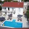 Luxushaus mit einer Gesamtfläche von 240 m2 besteht aus Keller, Erdgeschoss und erstem Stock, befindet sich auf einem 650 m2 großen Grundstück und ist nur 200 Meter vom Meer entfernt. Im Untergeschoss befindet sich ein Badezimmer, ein Abstellraum, eine Waschküche und Vorbereitung für die Sauna. Im Erdgeschoss befindet sich eine Wohnung bestehend aus Küche, Esszimmer und Wohnzimmer, Schlafzimmer und Badezimmer mit Zugang zu einem wunderschön angelegten Garten und Swimmingpool. Es gibt auch ein Studio-Apartment mit einer Miniküche und einem Badezimmer. Im ersten Stock befindet sich eine Wohnung mit einer Gesamtfläche von 100 m2, die aus einer Küche, einem Esszimmer und einem Wohnzimmer in einem Raum, einem großen Schlafzimmer, einem Badezimmer und einer Toilette besteht. Das Anwesen ist hochwertig gebaut, wunderschön dekoriert und eingerichtet und wird als solches verkauft.