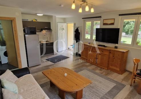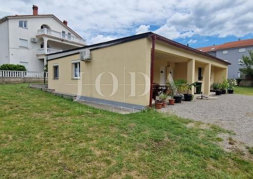 Dieses schöne Einfamilienhaus befindet sich im charmanten Dorf Tribalj und verfügt über einen großen Garten. Das Anwesen umfasst ein Hauptgebäude, ein Nebengebäude, das als Apartment dient, und zwei Fertiggaragen.