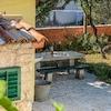 Wir verkaufen dieses schöne Apartmenthaus auf einem Grundstück von 1270 m2, in guter Lage im Zentrum von Novalja, nur 300 Meter vom Meer entfernt. Das Haus ist in ein Erdgeschoss und ein Obergeschoss mit dazugehörigem Nebengebäude aufgeteilt, in dem sich zwei Studio-Apartments mit jeweils eigener Terrasse und separatem Eingang befinden. Im Haupthaus verfügen wir über drei Wohnungen, von denen sich zwei im Erdgeschoss befinden, während wir im ersten Stock des Hauses eine Dreizimmerwohnung mit großzügiger Terrasse haben. Im weitläufigen und gepflegten Garten stehen 7 Olivenbäume, vier Mandelbäume und viele mediterrane Pflanzen. Wir haben Parkplätze für acht Autos im Garten. Eine ausgezeichnete Immobilie, eine ideale Investition für eine touristische Vermietung, bei der die Belegung während der gesamten Saison garantiert ist.