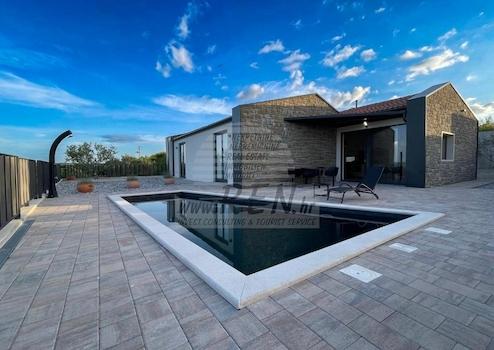 Das Haus verfügt über insgesamt 145 m2, Garten 592 m2, ist 10 Min. (12000m) vom Meer und vom schönen Naturstrände, 10 min. (8000m) entfernt sind Sie vom Zentrum von Buje. Das Haus hat Erdgeschoss. Es gibt 2 Schlafzimmer, 2 Bader, WC, Wohnzimmer, Küche, Depot. Das Haus ist ausgestattet mit Parkplatz, Pool NatureBlick.