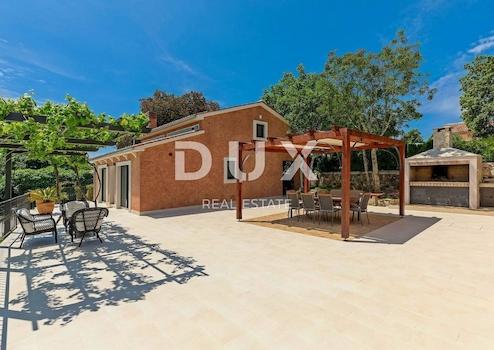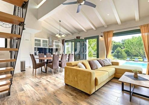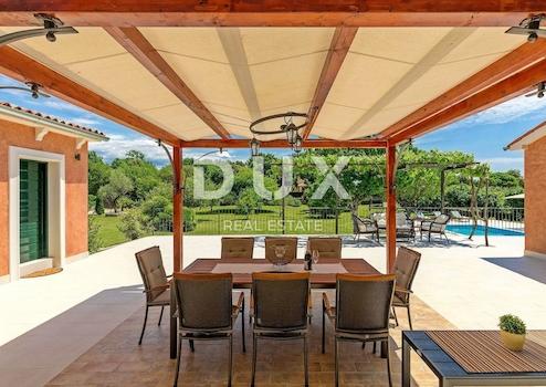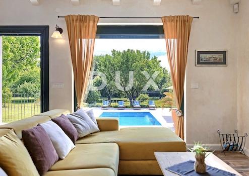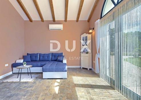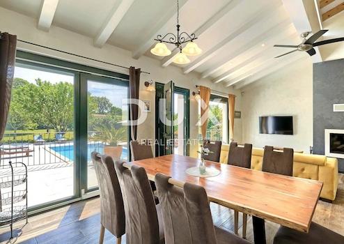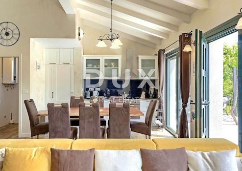Die attraktivste malerische Stadt Istriens, Rovinj, mit ihrer Altstadt, die unter dem Schutz der UNESCO steht, ist eine ewige Inspiration für Romantiker und Künstler und eines der am weitesten entwickelten Reiseziele in Kroatien. Es liegt an der Westküste Istriens und wird von einem deutlich gegliederten Archipel mit bis zu 14 Inselchen und 6 Felsen entlang einer 67 Kilometer langen Küstenlinie geschmückt, die ein geschütztes Naturerbe ist. Eine wunderschöne gegliederte Küste, ein besonders mildes mediterranes Mikroklima, ein ausgezeichnetes gastronomisches Angebot, ganzjährige kulturelle Veranstaltungen und nette und freundliche Gastgeber machen diese kleine Stadt magisch. Umgeben von viel Grün in einem sanften Viertel am Rande des magischen Rovinj steht eine Oase des Komforts und der Ruhe in Strandnähe zum Verkauf. Das harmonische Anwesen besteht aus einem Haupthaus, einem Gästehaus und einem Swimmingpool und zeichnet sich neben der Mikrolage auch durch die Qualität seiner Bauweise aus, die langfristige Zufriedenheit und Wohnqualität garantiert. Zeitlos gestaltete Häuser fügen sich in Form und Farbe in das Dorf und die Landschaft ein und jedes Haus ist als geschmackvoll eingerichtete und gut ausgestattete Wohneinheit konzipiert. Das Haupthaus erstreckt sich über zwei Etagen. Das Erdgeschoss besteht aus einem offenen Raumkonzept, das Küche, Esszimmer und Wohnzimmer, ein Gäste-WC und zwei Schlafzimmer mit eigenen Badezimmern vereint. Das Loft besteht aus einem Galerieraum und einem Schlafzimmer mit eigenem Bad. Das Gästehaus erstreckt sich über eine Etage und besteht aus einem Wohnzimmer mit Küche, einem Schlafzimmer und einem Badezimmer. Zwischen den Häusern befindet sich ein Sommeresszimmer mit Pergola und offenem Kamin, und die perfekte Harmonie wird durch einen 32 m² großen Salzwasserpool mit Sonnendeck abgerundet. Der weitläufige Garten ist komplett eingezäunt, mit automatischer Bewässerung ausgestattet und mit Oliven, Obstbäumen und verschiedenen einheimischen Kräutern und Pflanzen angereichert. Diese Rarität auf dem Markt ist eine ideale Gelegenheit für ein komfortables Familienleben sowie eine Investition zum Zweck einer bereits etablierten touristischen Vermietung. Sehr geehrte Kunden, die Agenturprovision wird gemäß den Allgemeinen Geschäftsbedingungen berechnet: www.dux-nekretnine.hr/opci-uvjeti-poslovanja