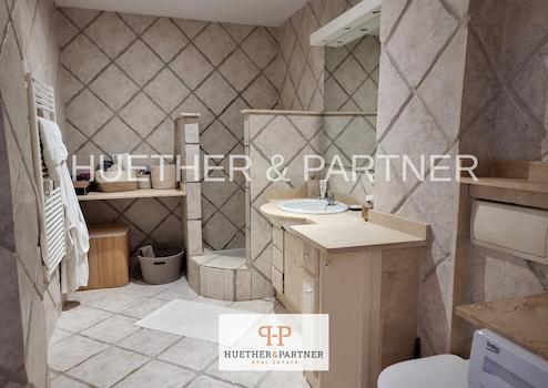 Zur gehobenen Ausstattung zählen Fußbodenheizung (auch im Gäste-Apartment), Klimaanlage (warm/ kalt), bodentiefe Panoramafenster aus Kunststoff, Doppelverglasung, Innenwände aus Naturstein, moderne Bad-Armaturen und hochwertiger Fliesenboden.