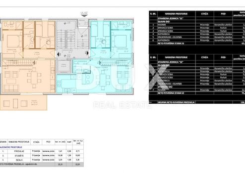 Eine moderne Wohnung im Bau in Sukošan in der Nähe von Zadar steht zum Verkauf. Die Wohnung mit einer Gesamtwohnfläche von 96,07 m2 befindet sich im Erdgeschoss eines kleineren Wohnhauses mit 6 Wohneinheiten. Die Wohnung besteht aus einem Wohnzimmer, einer Küche und einem Esszimmer, zwei Schlafzimmern und zwei Badezimmern im Erdgeschoss mit einer Gesamtfläche von 63,10 m2, einer überdachten Terrasse von 12,30 m2 und einem geräumigen Arbeitszimmer/Taverne von 29,80 m2 im Erdgeschoss Keller des Gebäudes. Zur Wohnung gehören außerdem zwei Außenparkplätze und ein Abstellraum im Keller des Gebäudes, sodass der Gesamtnutzwert der Wohnungsfläche 116,79 m2 beträgt. Die Wohnung ist voll klimatisiert und verfügt über Fußbodenheizung. Beim Bau wurden hochwertige Materialien wie Stahlbetonbauweise und Wärmedämmung an der Steinwollfassade verwendet. Für die Bodenbeläge wurde erstklassige Keramik verwendet und die Räume sind mit Dreischichtparkett ausgestattet. Die Tischlerei besteht aus Aluminium und es sind elektrische Jalousien und Moskitonetze installiert. Der geplante Baufertigstellungstermin ist Mitte 2025. Die Anlage ist 250 m vom beliebten Strand „Kinderparadies“ entfernt. Die Stadt Sukošan ist eine kleine Küstenstadt in der Nähe von Zadar mit einem Yachthafen und somit ein wahres Paradies für Segler. In der Umgebung gibt es viele weitere malerische Küstenstädte wie Bibinje, Turnje oder die historische Stadt Biograd na Moru. Das Stadtzentrum, die Stadt Zadar, ist 15 km entfernt und der nächste Flughafen ist nur 10 km von der Unterkunft entfernt. Dank seiner Lage im Zentrum Norddalmatiens bietet es Zugang zu zahlreichen Inseln in den Gewässern von Zadar sowie die Nähe zu verschiedenen Nationalparks und Naturparks. In der Nähe befinden sich beispielsweise der Naturpark Vrana-See und der Kornati-Nationalpark, ein Archipel von beeindruckender Geographie mit 89 Inseln, Inselchen und Felsen. „Sehr geehrte Kunden, die Agenturprovision wird gemäß den Allgemeinen Geschäftsbedingungen berechnet“ www.dux-nekretnine.hr/opci-uvjeti-poslovanja