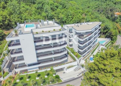 Wir vermitteln den Verkauf einer schönen modernen Wohnung S1 mit einer Fläche von 105,35 m2 oberhalb des Zentrums von Opatija mit Panoramablick auf das Meer, 2 Balkonen, einem Aufzug und 2 Parkplätzen. Dieses moderne und exklusive Anwesen zeichnet sich durch seine südliche Ausrichtung mit schöner Aussicht, Glasschiebewänden, die eine freie Sicht ermöglichen, und viel Licht das ganze Jahr über aus. Die Wohnung befindet sich im 1. Stock eines exklusiven Neubaus und besteht aus zwei Schlafzimmern mit Badezimmern, einer Toilette, einem schönen offenen Wohnzimmer, das mit dem Esszimmer und der Küche verbunden ist. Vom gesamten Raum aus gibt es einen Ausgang zur Terrasse, von der aus Sie ungehindert den wunderschönen Blick auf das blaue Meer genießen können. Wir heben hervor: - fantastische SCHUCO-Aluminiumschreinerei - erstklassiges Parkett - elektrische Jalousien - erstklassige Sanitärkeramik - italienische Keramik - einbruchsichere Eingangstür - Aufzug - Gemeinschaftspool - energieeffiziente Bauweise und Isolierung Die Wohnung hat Zugang zum Gemeinschaftspool, und verfügt außerdem über einen Aufzug und zwei Parkplätze. Die Lage der Wohnung ist fantastisch: eine ruhige und friedliche Straße oberhalb des Zentrums von Opatija, nahe dem Strand und der Promenade Lungomare. Den Strand erreichen Sie zu Fuß in nur 8 Minuten, mit dem Auto dauert es tatsächlich nur eine Minute. Es ist wichtig darauf hinzuweisen, dass das Gebäude von grünem Wald umgeben ist. Es ist eine perfekte Gelegenheit, eine fantastische Immobilie in einer der schönsten Städte an der Adria zu kaufen. Ideal sowohl zum Wohnen als auch zur touristischen Vermietung oder Investition.