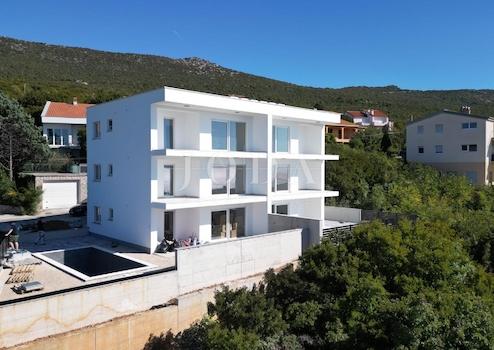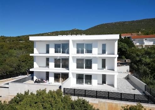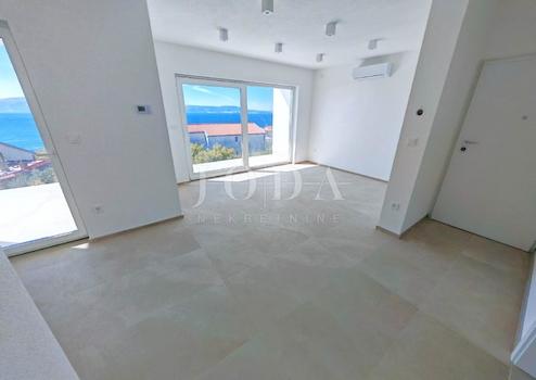 Hervorragende Aufteilung der Apartments mit zwei Schlafzimmern, Badezimmer, offenem Wohnzimmer und Küche sowie großer Loggia mit Panoramablick auf das Meer.