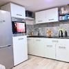 Im ersten Stock befindet sich eine Wohnung mit einer Fläche von 58,68 m2, mit zwei Schlafzimmern, einem gemütlichen Wohnzimmer, einer voll ausgestatteten Küche und einem großen offenen Raum mit Essbereich. Das Badezimmer ist komplett ausgestattet und zusätzlicher Stauraum wird durch einen Abstellraum bereitgestellt. Die Terrasse bietet zusätzlichen Außenbereich zur Entspannung.