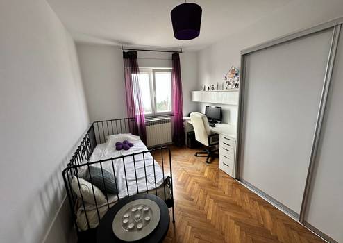 Rijeka, Zamet Donji, in ausgezeichneter Lage verkaufen wir eine 4-Zimmerwohnung (3 Schlafzimmer + Wohnzimmer) mit einer Nettowohnfläche von über 80 m2, einer überdachten Terrasse von 25 m2, einem Balkon von 4 m2 und einer Garage von 13 m2 m2 und ein privater Garten von 80 m2 mit Grill. Es befindet sich im 1. Stock des Hauses und besteht aus einer Küche, einem Wohnzimmer, drei Schlafzimmern, einem Flur, einem Badezimmer, einer Toilette und einem Abstellraum. Neben der Garage verfügt die Wohnung auch über drei Parkplätze.