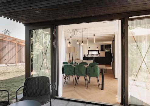 Die Küche ist mit hochwertigen Geräten ausgestattet, darunter ein Induktionskochfeld, ein eingebauter Backofen, ein Kühlschrank, ein Quoocker-Wasserhahn und ein Geschirrspüler. Die großen Fenster lassen viel Tageslicht herein und bieten einen schönen Blick nach draußen. An der Kücheninsel mit bequemen Barhockern können Sie eine Tasse Kaffee oder eine schnelle Mahlzeit genießen.