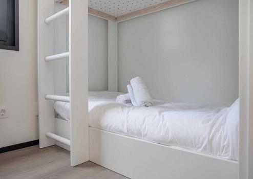 Schlafzimmer 2 ist speziell für kleine Gäste gedacht. Dieses gemütliche Zimmer ist mit einem Etagenbett ausgestattet, was es zu einem perfekten und lustigen Raum für Kinder macht. Das spielerische Design des Etagenbettes bietet nicht nur einen bequemen Schlafplatz, sondern auch einen spannenden Schlafbereich, den Kinder lieben werden. Schlafzimmer 2 bietet eine gemütliche und fröhliche Umgebung, ideal für einen unvergesslichen Urlaub für die Kleinsten.