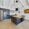 Beim Betreten dieser Villa werden Sie von einem großzügigen Wohnzimmer mit wunderschönen Holzbalken an der Decke empfangen, die dem Raum Wärme und Charakter verleihen. Verbunden mit einem eleganten Esszimmer ist dieser Bereich perfekt für Familienfeiern und Abendessen mit Freunden. Die moderne Küche, ausgestattet mit modernsten Geräten, ermöglicht die Zubereitung kulinarischer Köstlichkeiten mit Meerblick.