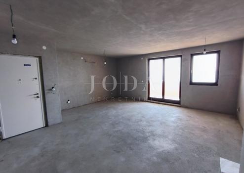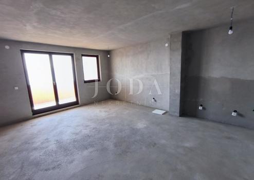 Die Wohnung befindet sich in der Bauphase und wird als solche verkauft. Strom, Wasser, Abwasser, Abscheider, Installationen für Klimaanlagen, Keramik auf der Treppe, Türen am Holzschuppen wurden installiert. Die Wohnung verfügt über zwei Zimmer, ein Wohnzimmer, eine Küche und ein Esszimmer, zwei Badezimmer, eine Toilette, ein Zimmer, einen Flur und eine große Loggia von 13,80 m2.