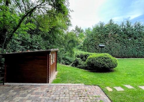A ház mögött kert csodásan karban van tartva, és az ez mögötti erdő is a telek része, így saját erdeje lesz a leendő tulajdonosnak.