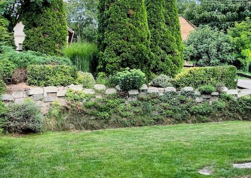 Der Garten ist von allen Seiten vor neugierigen Blicken geschützt, doch Rehe sind häufige Gäste. Im Garten gibt es außerdem ein Holzlager, ein Werkzeughaus, einen Spieß und eine Sonnenbank.