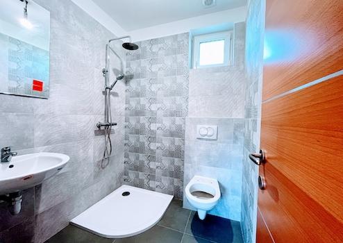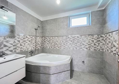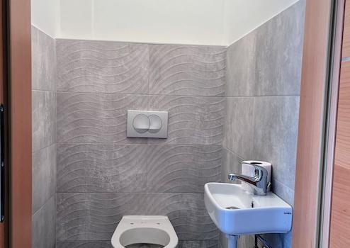 A nagyobb - előszobából nyíló - fürdőszobát káddal szerelték, és szintén az előszobából nyílik a külön wc is.