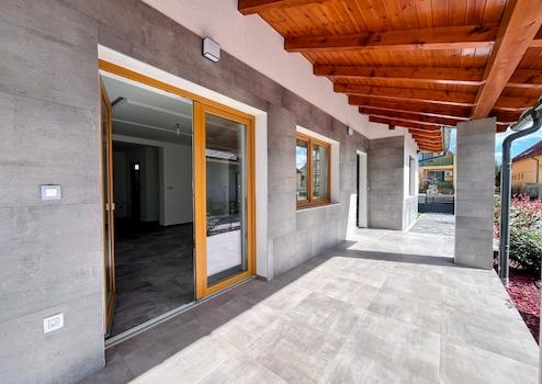 A nagy, fedett teraszra a bejáraton kívül a nappali nagy, elhúzható, üveges teraszajtaján is ki lehet jutni, így az nyári időszakban az élettér szerves része lehet.