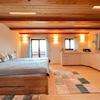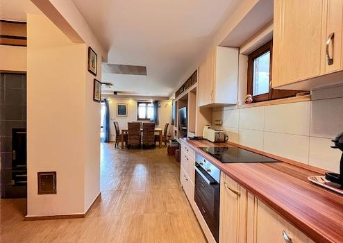 In der unteren Etage befinden sich ein großes Wohnzimmer mit Terrasse, eine Küche, ein Schlafzimmer, ein Bad/WC und ein großer Abstellraum (hier befindet sich der Maschinenbau des Hauses).
