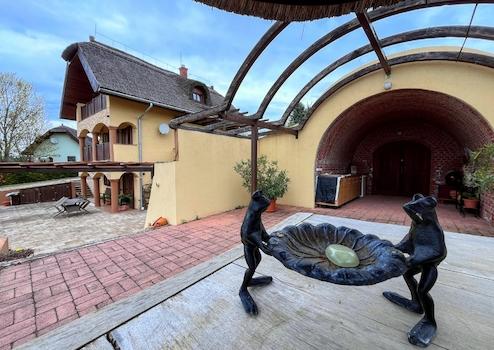 Auf dem Weinberghügel von Balatonberény, am Ende einer Sackgasse, abseits vom Lärm der Stadt, als wären wir in einem Arboretum, steht dieses vor einigen Jahren erbaute, wunderschöne Panoramahaus zum Verkauf . Die Balkone und die Terrasse des Hauses bieten einen atemberaubenden Blick auf die Bucht von Keszthely. Als Balaton-Haus ist natürlich auch der Weinkeller selbstverständlich und damit Sie für gastronomische Genüsse nicht weit vom Keller entfernt sein müssen, wurde auf der überdachten Kellerterrasse auch eine Sommerküche konzipiert.