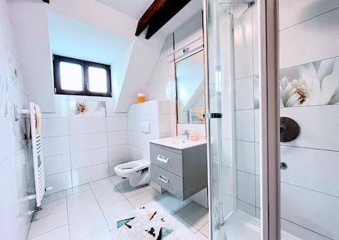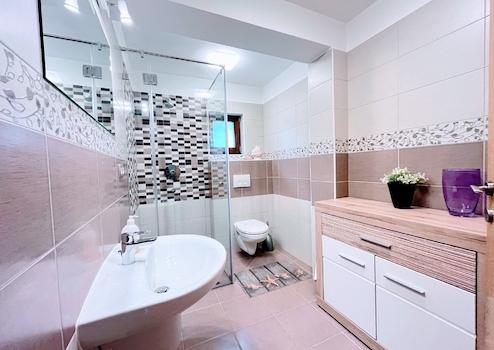 Auf jeder Ebene des dreistöckigen Hauses gibt es ein separates Badezimmer und eine Toilette. Die unteren und oberen beiden Ebenen sind über separate Eingänge zugänglich, sodass die Möglichkeit besteht, 3 separate Wohnungen zu schaffen.
