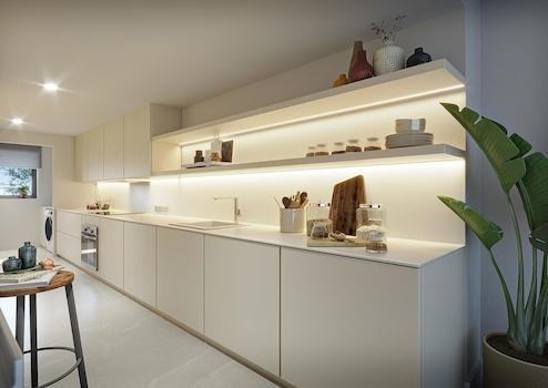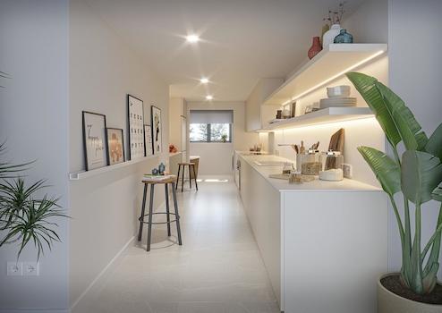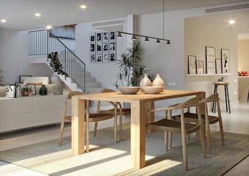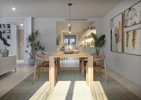 Jede Einheit verfügt über 3 Schlafzimmer sowie 2 Bäder (1 en-suite) und ein seperates Gäste WC. Die Immobilien verfügen über einen großzügigen, zur Terrasse offenen Wohn-/Essbereich und eine voll eingerichtete Küche, ganz nach dem open-living Konzept.